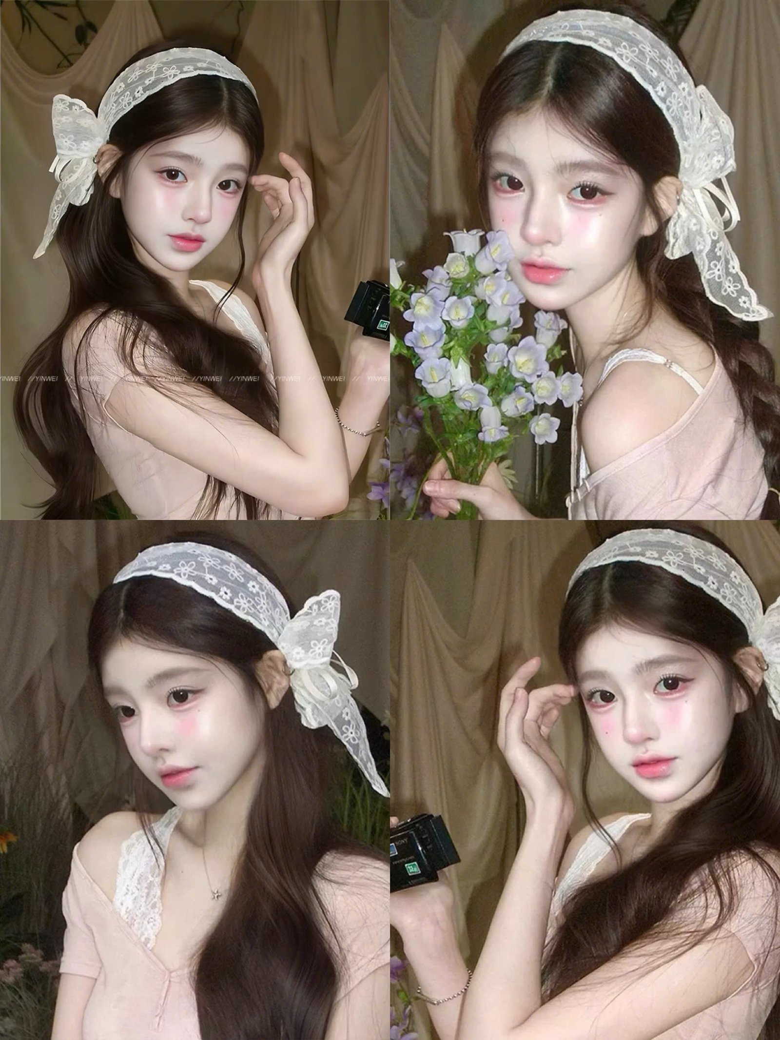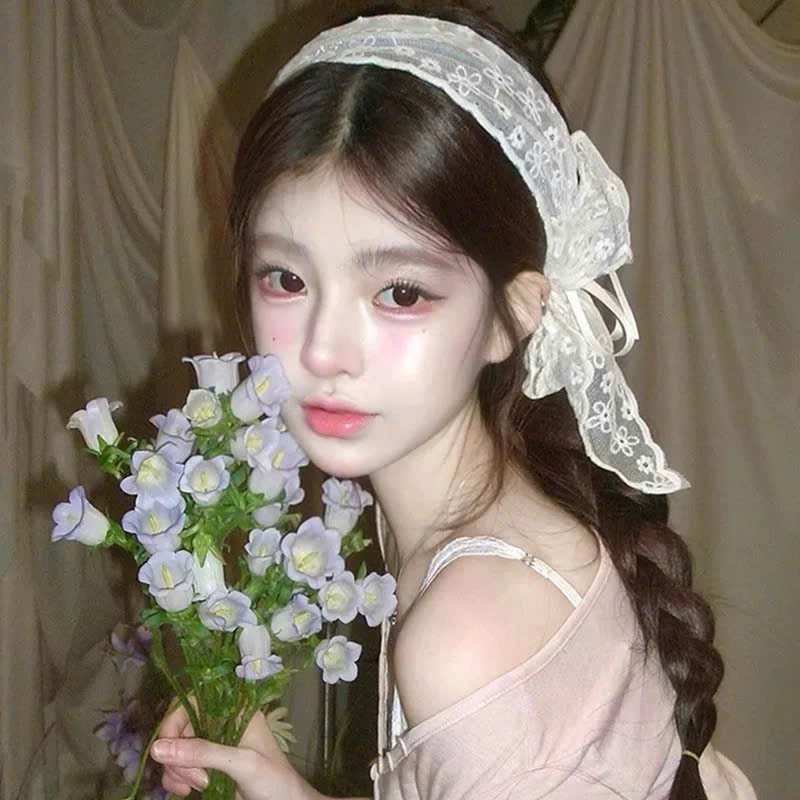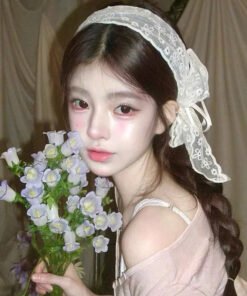 Khăn Turban Cài Tóc Nơ Ren Hoa Thêu Phong Cách Tiểu Thư